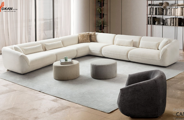 Диван Капри от турецкой фабоики производителя представлен в нашем интернет-магазине в Киеве. На фото диван представлен в самом большом размере и в белом цвете по желанию можно подобрать цвет обивки и размер дивана.