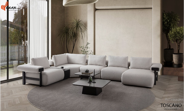 Дизайнерский диван Тоскана выполнен из натурального дерева каркасов и мягкой красивой ткани по типу букле. Диван по задумке является модульным, что дает возможность подобрать даную модель по нужным размерам.