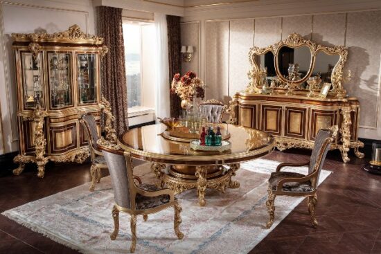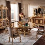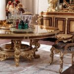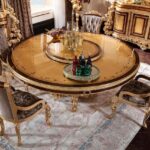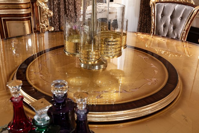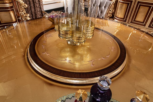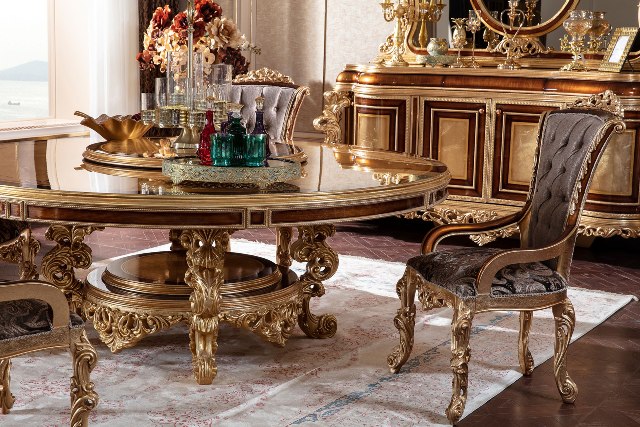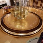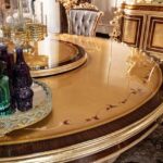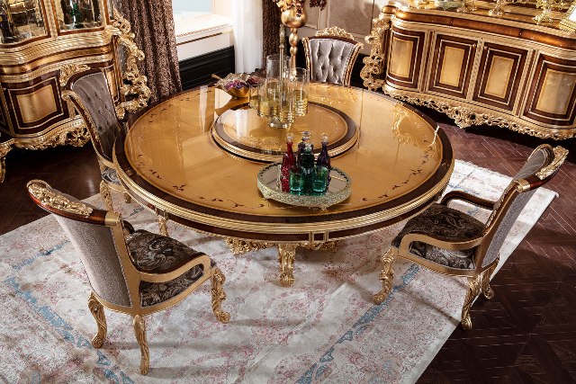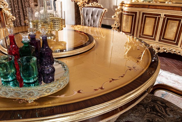 Красивы круглый обеденный стол Флоренция. Стол сделан из массива натурального дерева с инкрустацией. Столешница красиво украшена цветочными узорами. Стол можно купить отдельно или в комплекте со стульями.