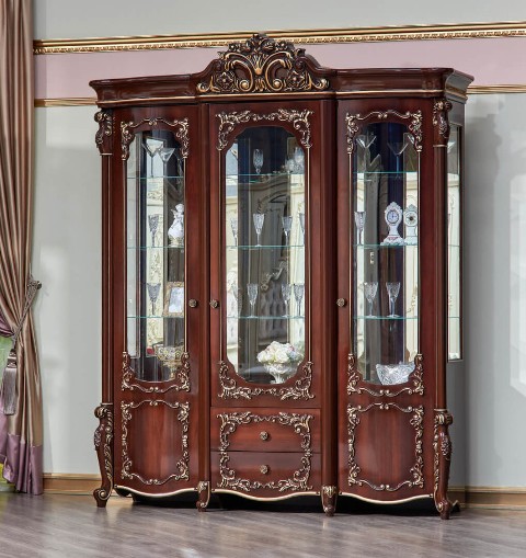 Коричневая трехдверная витрина для посуды в стиле барокко Батичелла