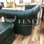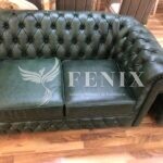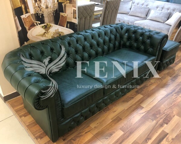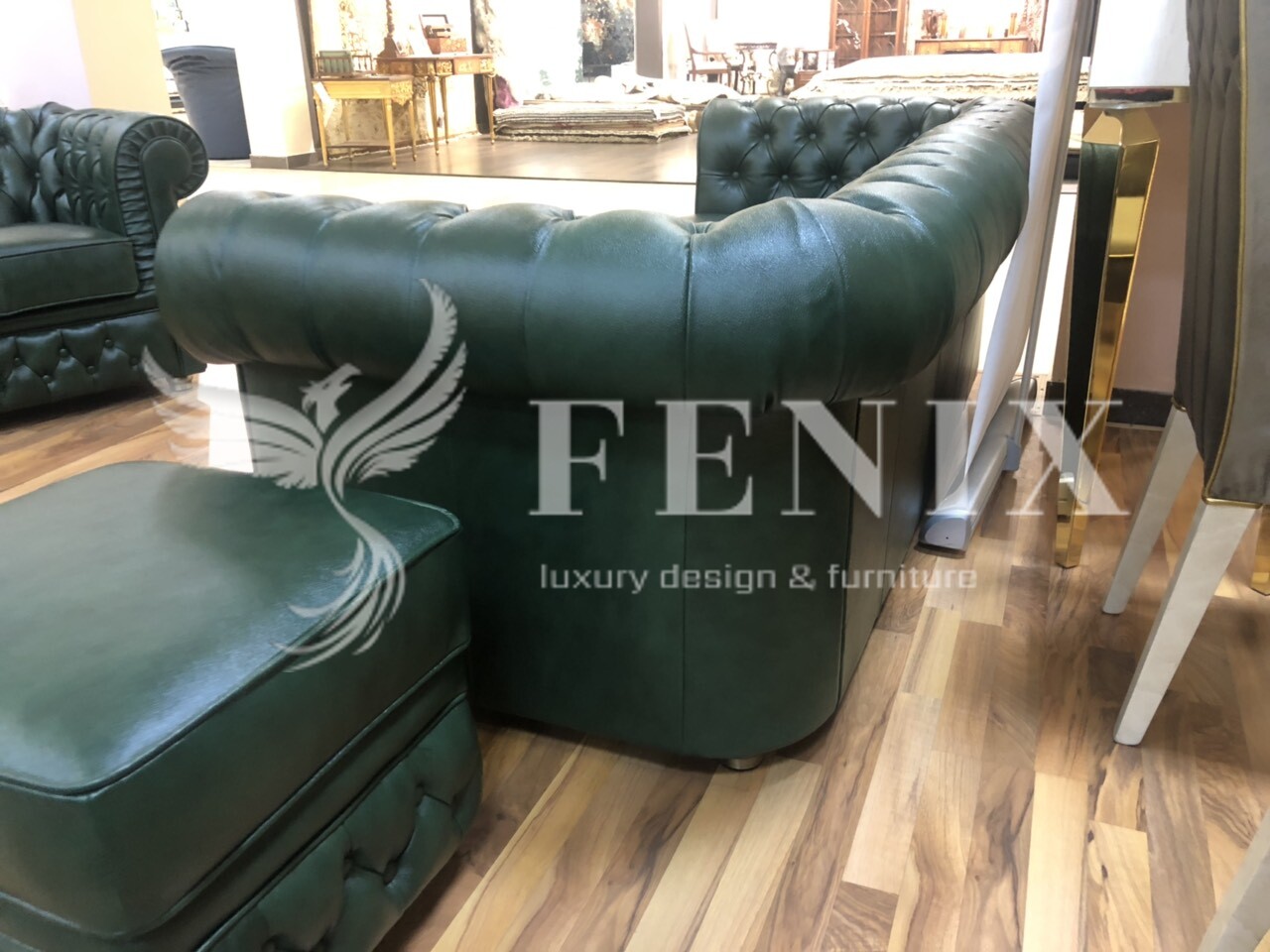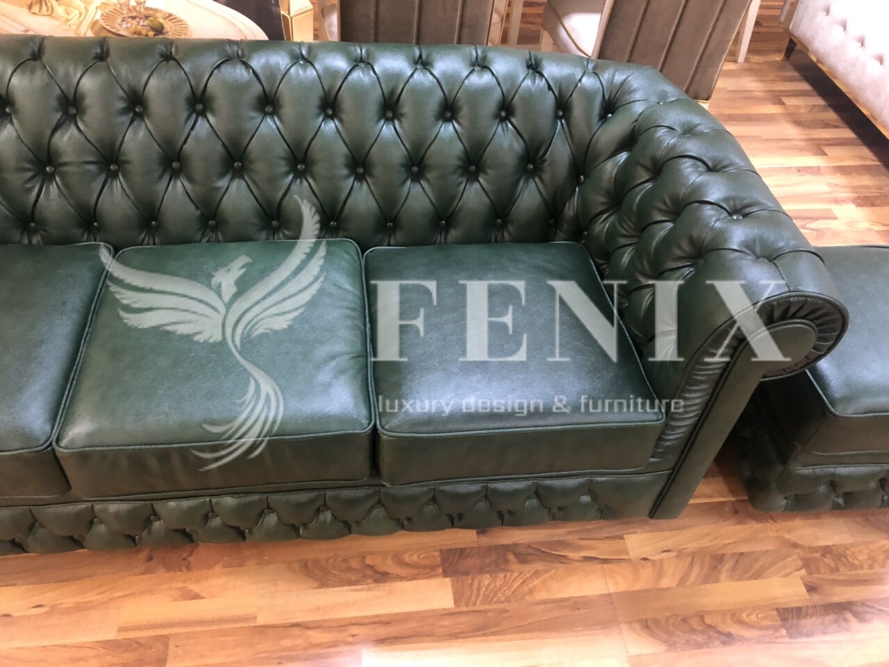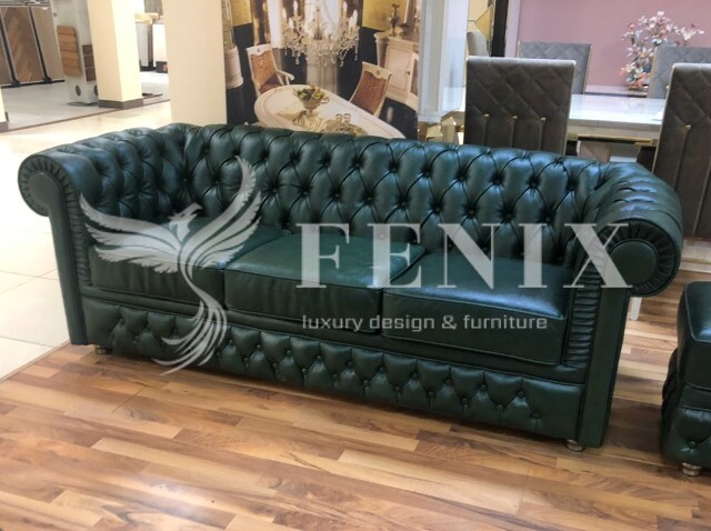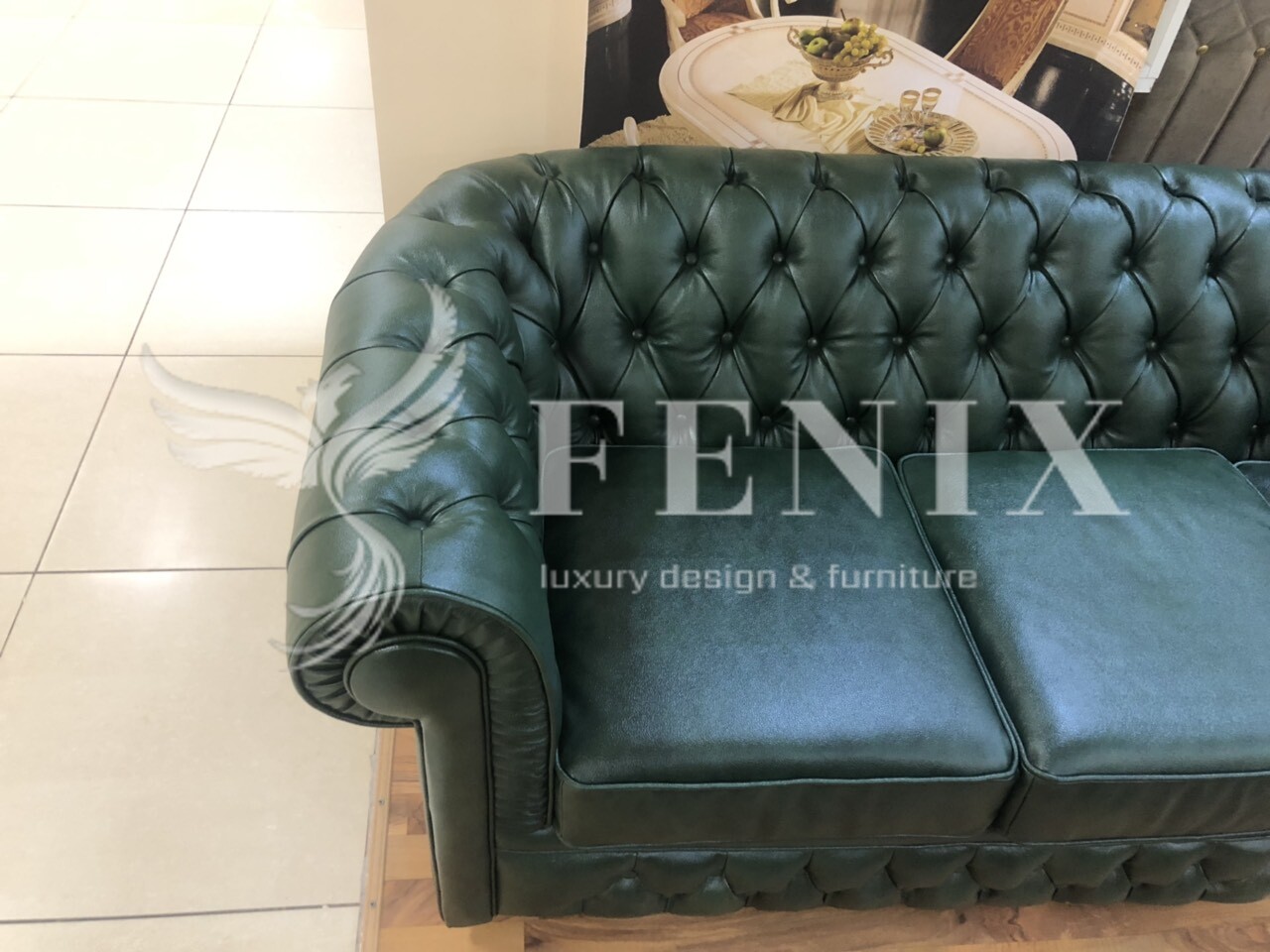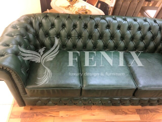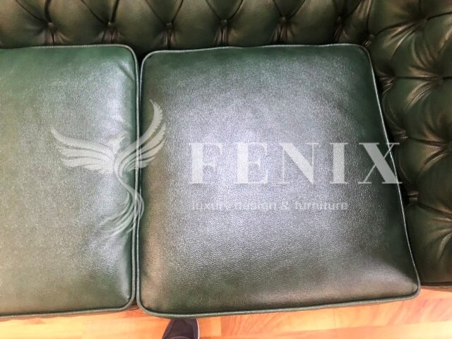 Диван Честер тройка (2100*920*750) выполнен в натуральной коже зеленого цвета на деревянном каркасе со спальным местом 1600*1900. Вы можете заказать такой диван в натуральной коже в любом цвете подходящему Вам по интерьеру (белый перламутр, черный, коричневый, красный и прочие по каталогу). Также можно заказать диван меньшего размера -двойку (1600*920*750). Диван двойку также можно сделать раскладной по Вашему желанию. В этом комплекте мягкой мебели есть кресло Честер и пуф. В нашем интернет-магазине мебели Вы сможете сделать заказ как на полный комплект так и выбрать определенные модели из коллекции мягкой мебели Честер. Такая мягкая мебель будет красиво смотреться в интерьере гостиной комнаты, домашнем или рабочем кабинете, в каминном зале.