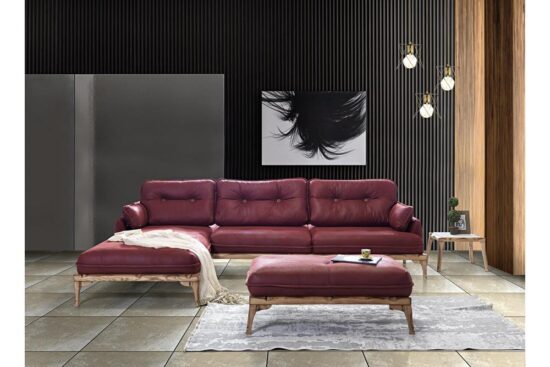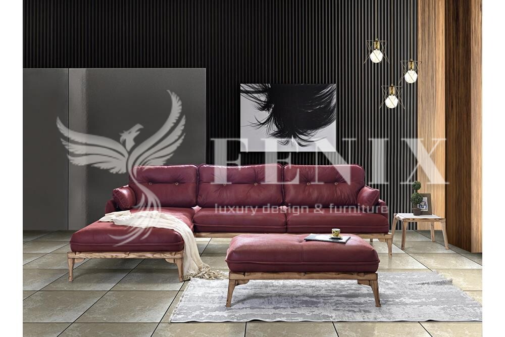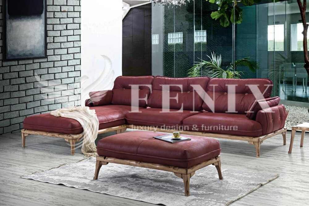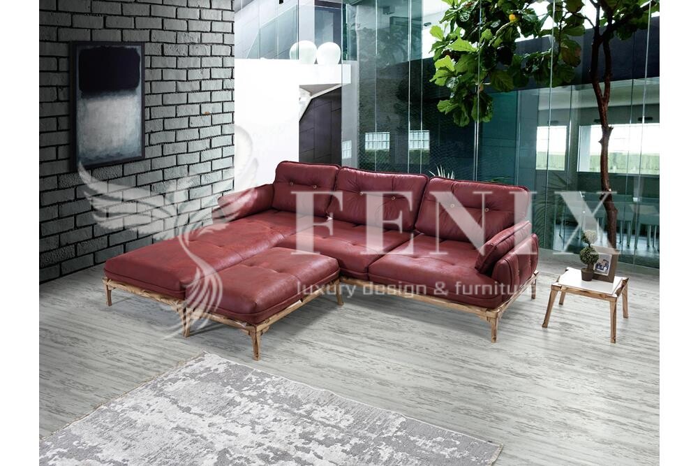 Мягкий раскладной диван с оттоманкой и пуфом Квадро. Диван выполнен из натуральной кожи и дерева. При желании клиента можно выполнить диван в ткани или эко-коже в любом цвете. Такой диван будет актуально смотреться в гостиной в стиле модерн.