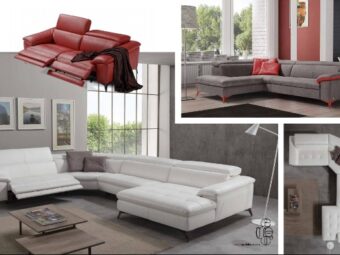 Модный красный диван с реклайнерами из итальянской кожи Мартин