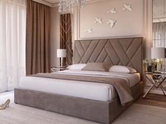 Мягкая бежевая кровать с подъемным механизмом Берлис
