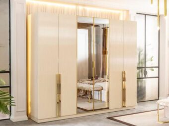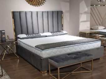 Серая велюровая кровать Фешн в стиле модерн с золотым декором