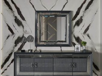 Серебряный буфет с зеркалом Аспендос в современном стиле