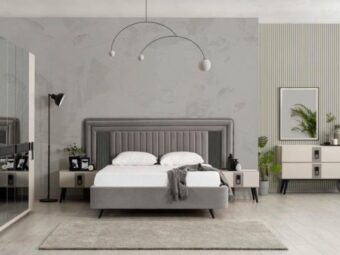 Серая прикроватная тумбочка с золотым декором Калисто, АКМ