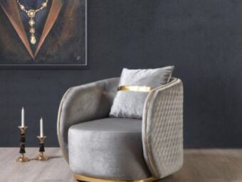 Серое велюровое кресло Букет с золотом