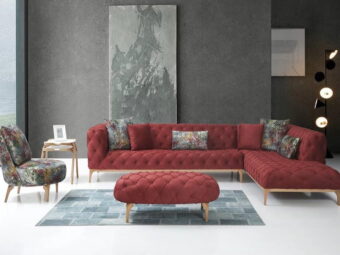 Угловой диван в красной ткани в стиле каретная стяжка (честер) Секрет Secret