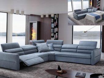 Угловой голубой диван с реклайнером EDITH