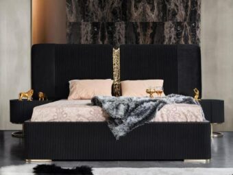Черная кровать Мун (MOON) с золотом в стиле АРТ-Деко