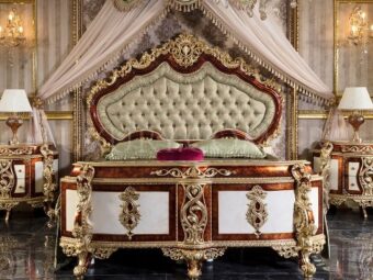Большая резная кровать с высоким мягким изголовьем РИМ, CIM