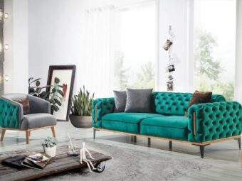 Зеленый диван в стиле капитоне Арес