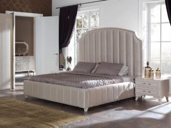 Классическая белая кровать с высоким мягким изголовьем СОХО