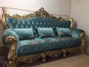 Классический бирюзовый диван на золотом каркасе Марлен, БЕЛ