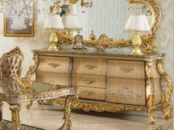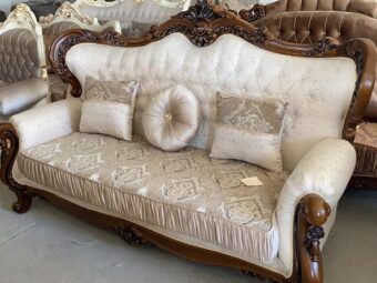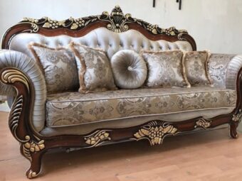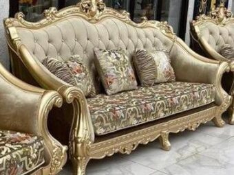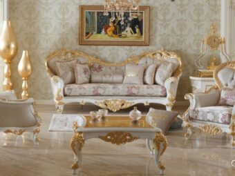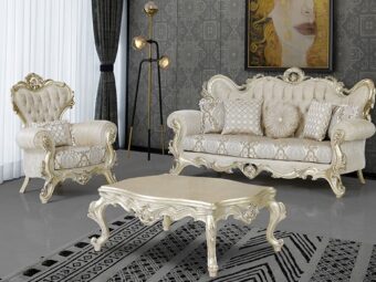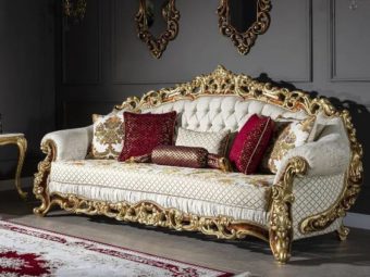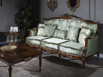 Классический диван с креслами Корона с золотой патиной в цвете орех, Турция