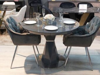 Круглый ореховый обеденный стол на одной ноге Бонд