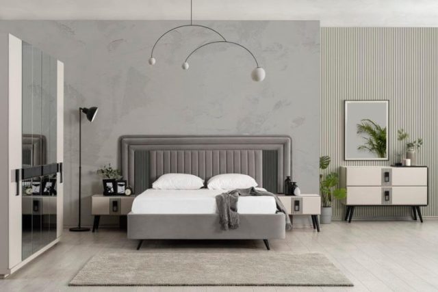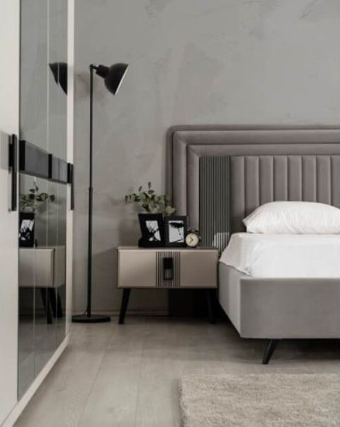 Серая турецкая кровать Эмма
