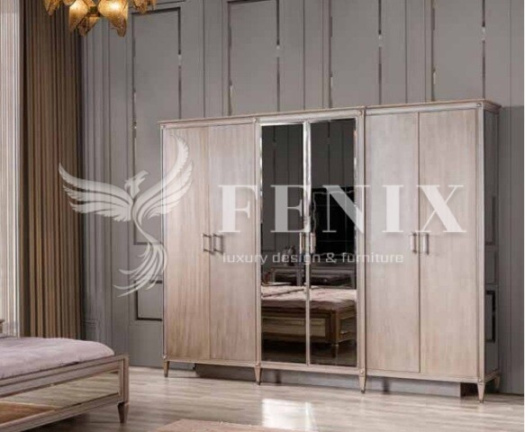 Шестидверный бежевый шкаф для одежды с зеркалами Кровн (Корона)
