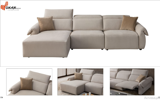 Ткань можно подобрать по каталогу. Диван можна заказать с реклайнером или без реклайнера.