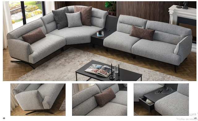 Даная модель дивана представлена как угловая, но на самом деле это модульный комплект мягких частей из которых можно собрать нужный по размеру, по дизайну прямой или угловой диван.