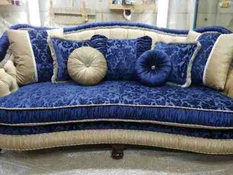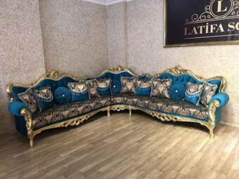 Синий угловой диван в золотом каркасе Халифа, Латифа