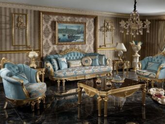 Голубой диван с креслами Антик в гостиную ( СIM )