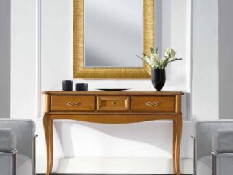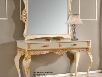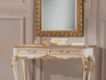 Золотой консольный столик Верона в прихожую с зеркалом и пуфом