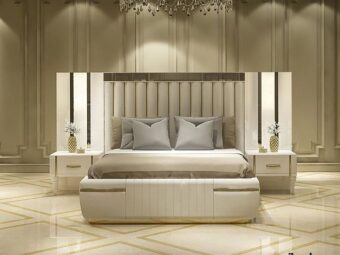Белая кровать с высоким изголовьем в королевском стиле Стамбул