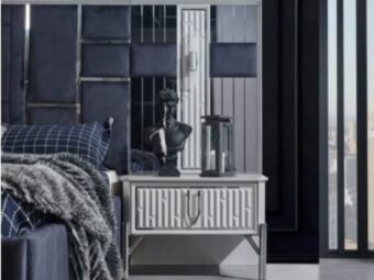 Белая прикроватная тумбочка с серебряным декором Седеф