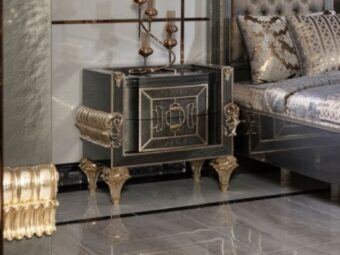 Черная прикроватная тумбочка с золотыми вставками Милан REST