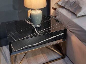 Черная прикроватная тумбочка с эффектом мрамора Батерфляй