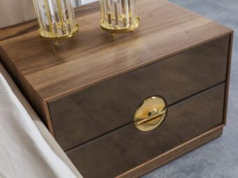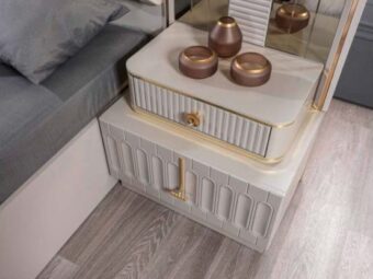 Серая прикроватная тумбочка с золотым декором Калисто, АКМ