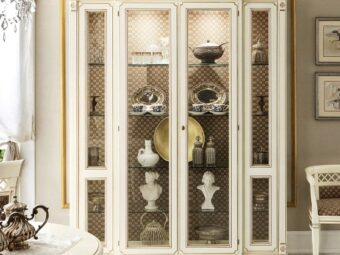 Белая витрина с золотой патиной Лорена в гостиную