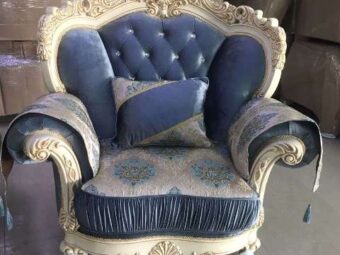 Синий раскладной диван с креслами в золотом дереве Патриций