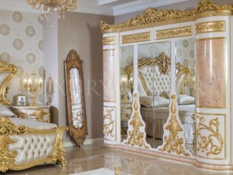 Шестидверный шкаф в стиле барокко с золотой патиной Роял